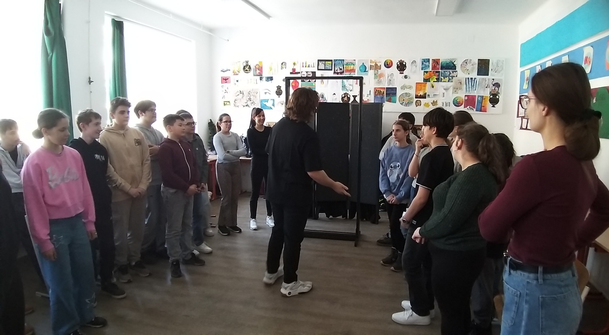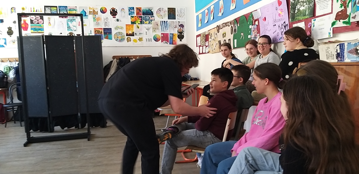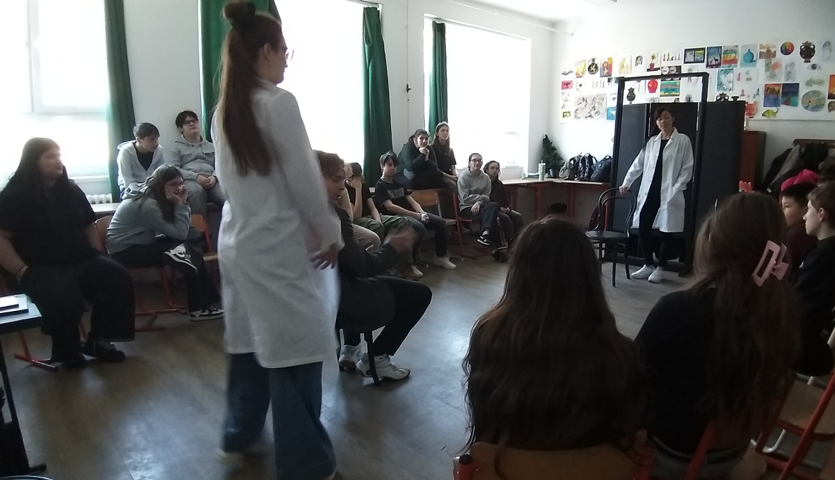 A diákok rövid, színházi jeleneteken keresztül találkozhattak olyan élethelyzetekkel, amelyekben a képernyők és a virtuális világ fontos szerepet játszanak. A történetek rávilágítottak arra, hogy a digitális eszközök egyszerre segítik és nehezítik mindennapjainkat. Megkönnyítik a tanulást és a kapcsolattartást, ugyanakkor előfordulhat, hogy elvonják figyelmünket a valódi jelenléttől, a személyes találkozásoktól és a körülöttünk lévő világtól.